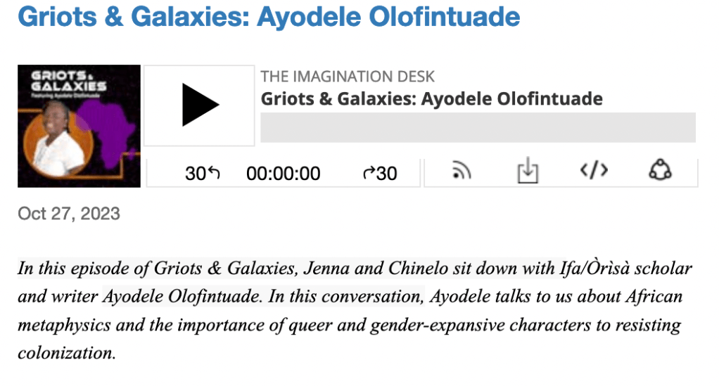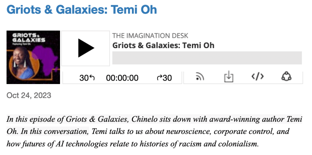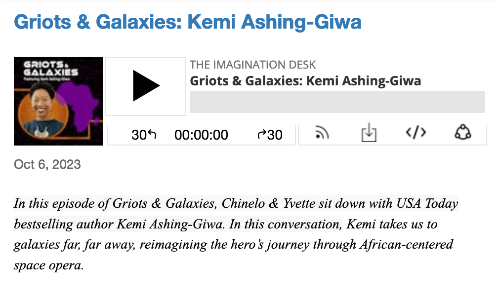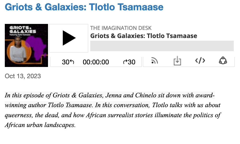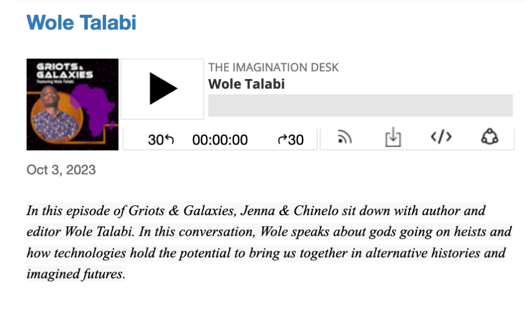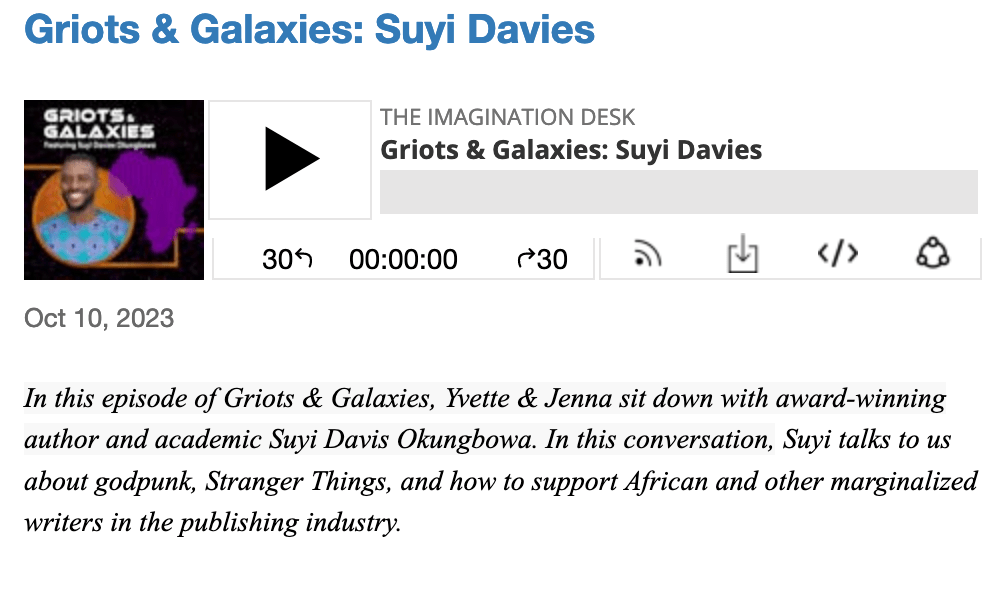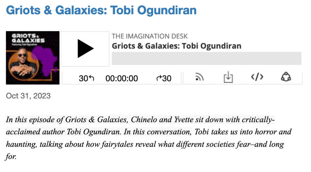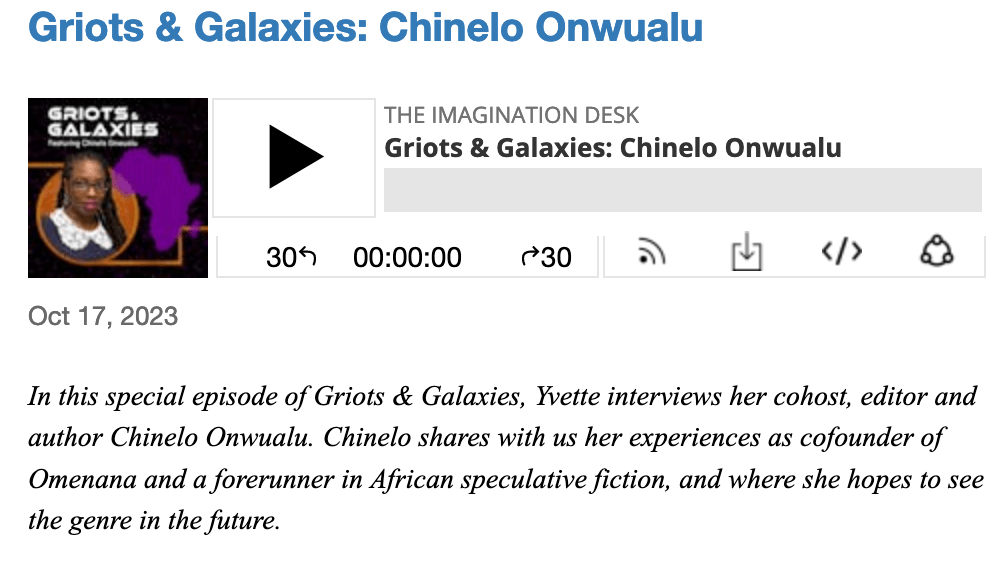 In the new podcast miniseries, Griots & Galaxies, Chinelo Onwualu, Yvette Lisa Ndlovu, and I interview 10 African speculative fiction writers about how African imagination can change the world.